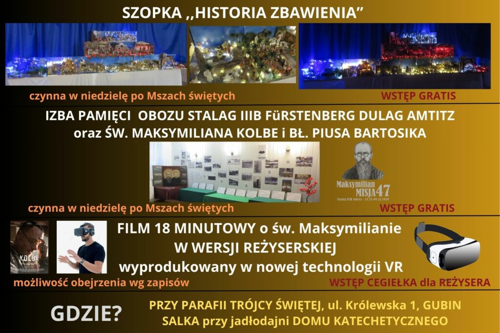 Witamy na stronie poświęconej pobytowi ojca Maksymiliana Kolbego w obozie jenieckim Stalag III B Amtitz – dzisiejsze Gębice pod Gubinem (woj. lubuskie). Ojciec Maksymilian chce pomagać naszym rodzinom, szczególnie ojcom, dlatego w modlitwach warto Mu powierzać swoje sprawy.